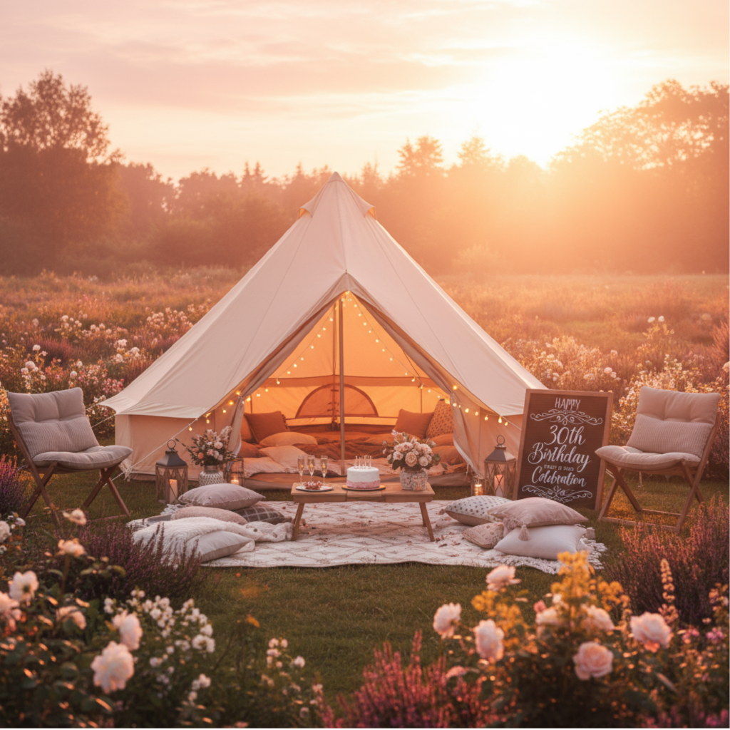 Bell tent setups for celebrations, group weekends, and special occasions.